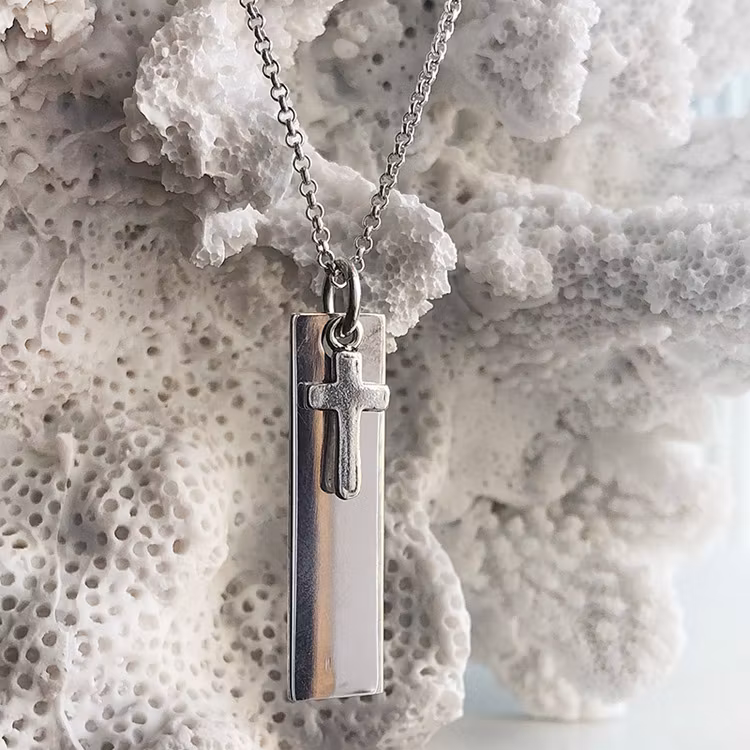 Hänge Tag med kors är grafiskt vackert samtidigt som korset kan vara en betydelsefull symbol. Stilrent och tidlöst. Korset hänger fritt i ringen.