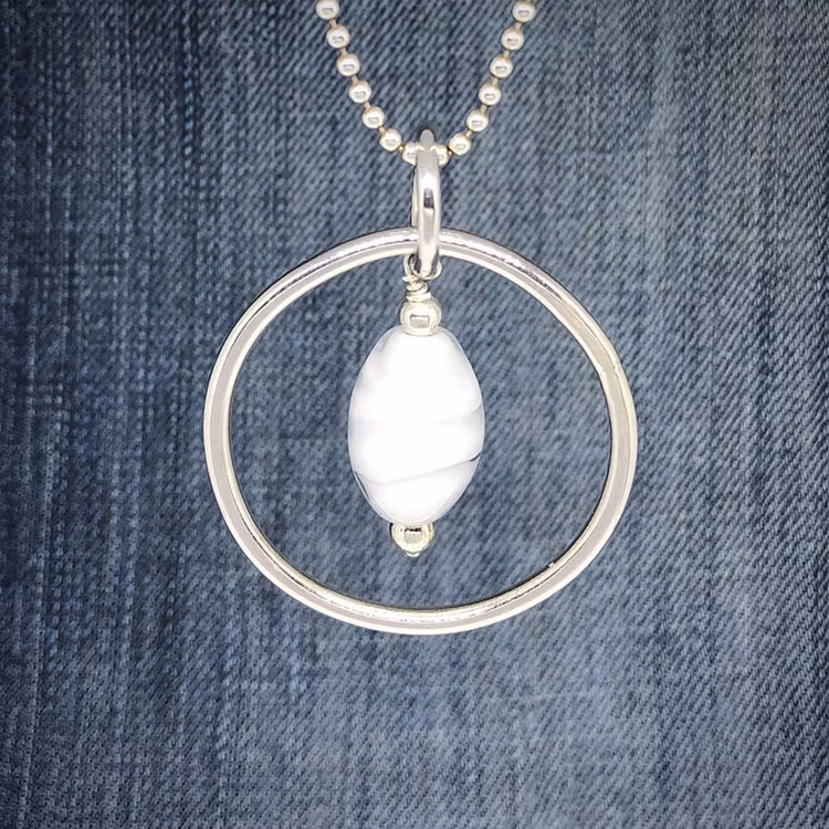 Hänge Slope Så härlig! Mönstret i den handgjorda glaspärlan liknar spår i en snöig backe. Eller kanske spritsad grädde...