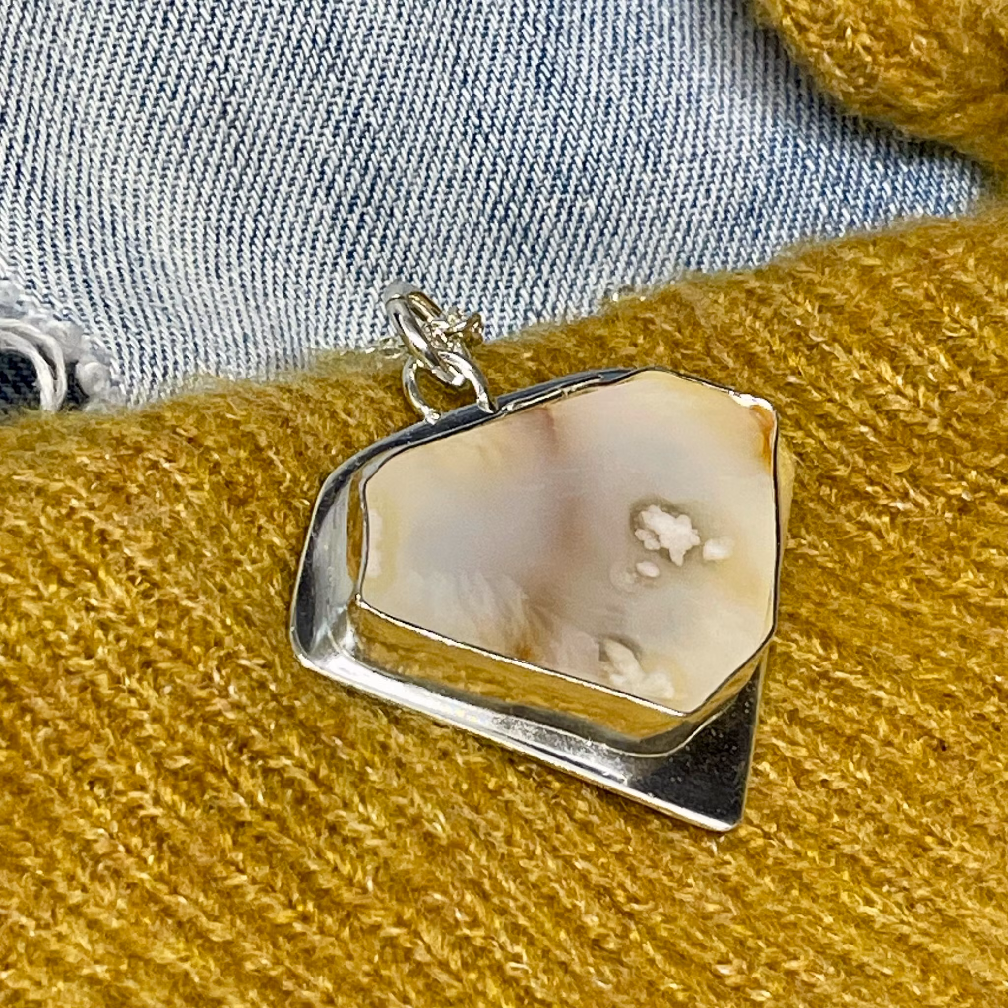Blomsteragat - en vacker oregelbunden sten infattad i silver.