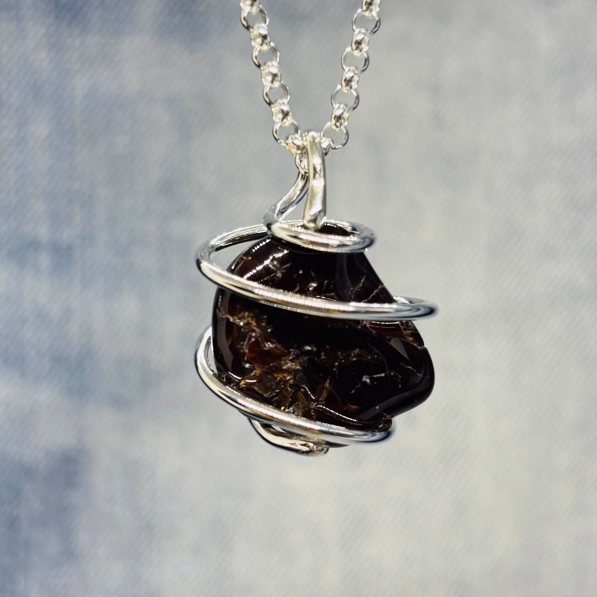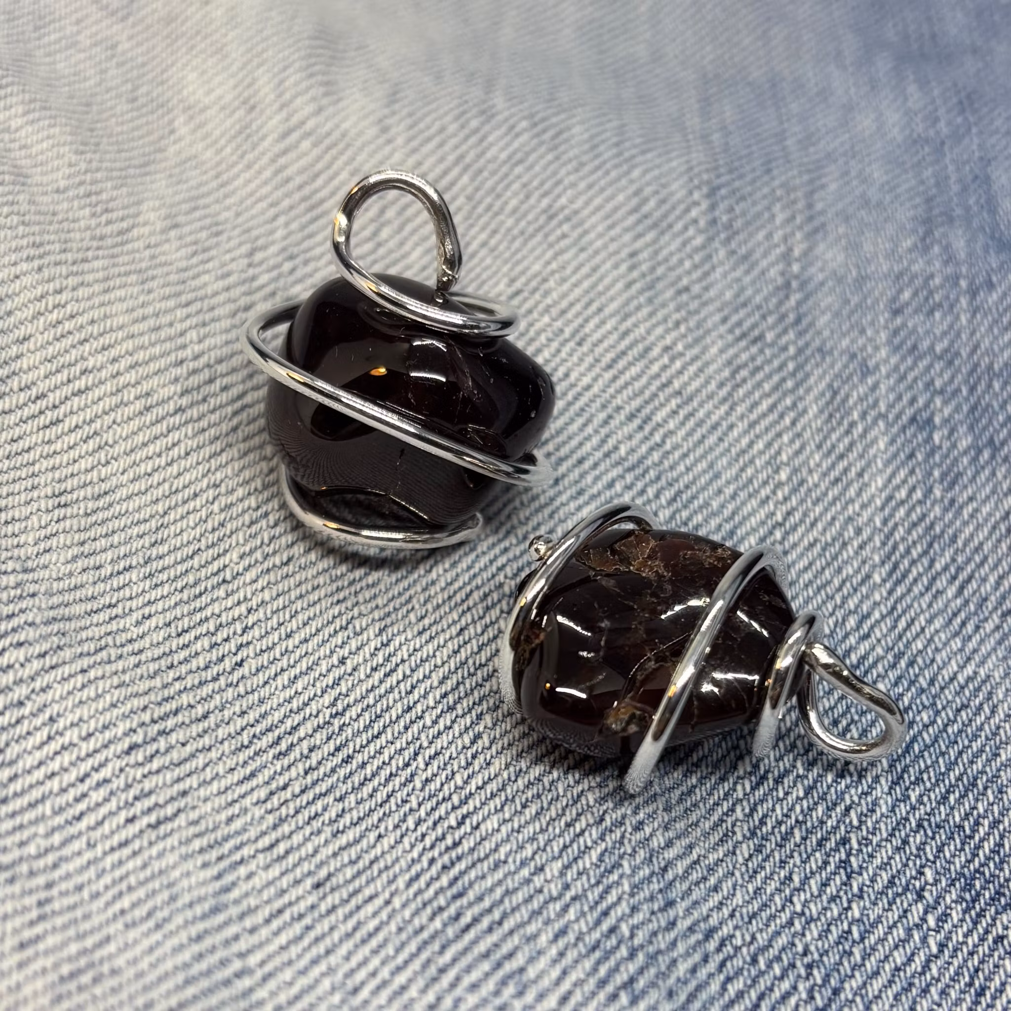 Hänge Sensuality - ett vackert hänge med en djupt vinröd Granat. Den är mjukt lindad med silver runt stenen. Ändarna är värmda och rundade för att förstärka stenens egenskaper.