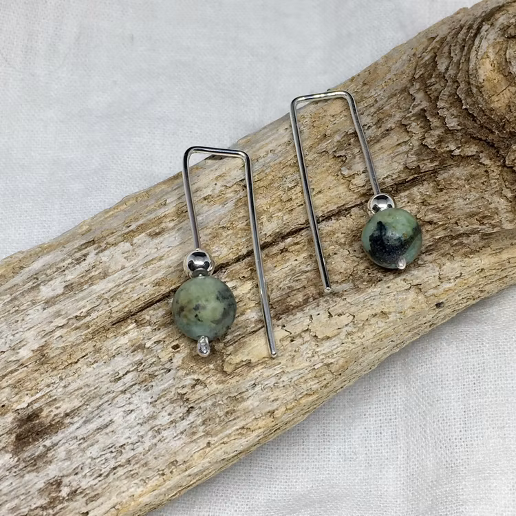Örhänge Open Square har en fin stilren form som passar vid många tillfällen. De är mycket bekväma att bära och är lätta att sätta på plats. Du köper dem med den halvädelsten/ kristall som du väljer själv. Här syns Afrikansk Turkos. Säljs i par.